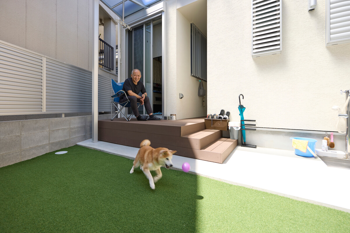 ふたりのお子様がすでに独立され、愛犬を含めた2人と1匹で暮らすS様ご夫妻。旦那さまはゴルフを、奥様はステンドグラスづくりを楽しまれており、おふたりにとって最大の癒やしは、ワンちゃんとじゃれることだそうです。