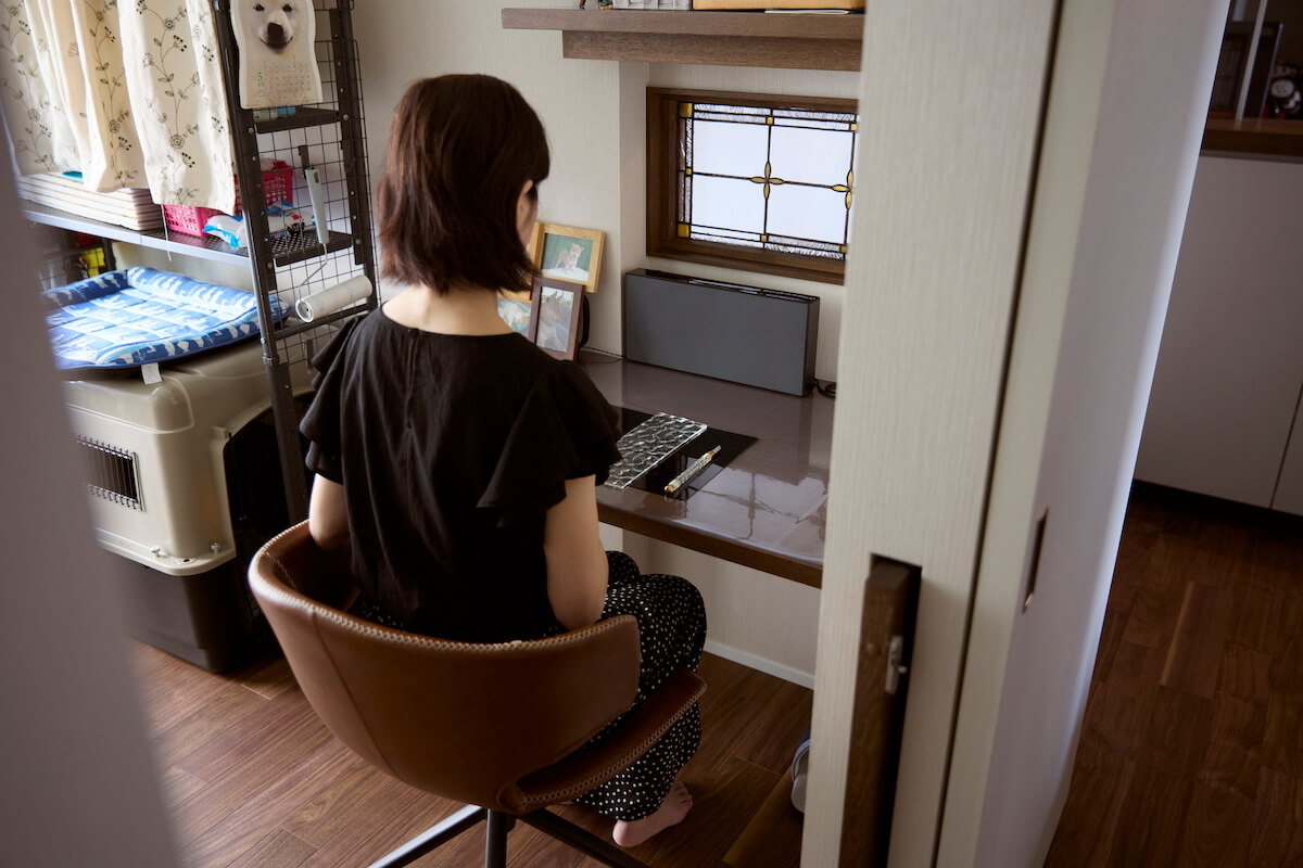 また奥様も「風通し、収納、導線、すべてが大好き。空が見えるリビングでご飯を食べると、美味しく感じられる」と満足そうな様子。奥様はこの家を建てた後に、趣味だったステンドグラスづくりにより本格的に取り組むと決めていたそうで、作業スペースも確保していました。今では作品を飾る棚の増設を設計士と一緒に検討するなど、新しい暮らしを満喫されています。